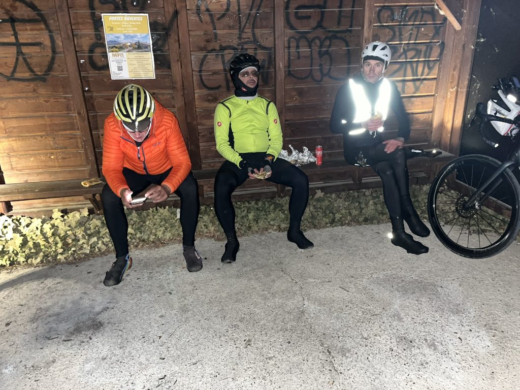 C’est à Séderon, vers 5h30 du matin, que notre salut prend la forme d’une porte d’église entrouverte. On s’y engouffre sans hésiter. Quelques minutes à l’abri, à reprendre vie, à plaisanter un peu de la situation — parce que quand on est quatre, même le froid peut devenir une anecdote. Ce genre de moment, inattendu et un peu surréaliste, c’est précisément ce qui fait qu’on se souvient d’une Flèche.